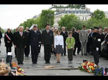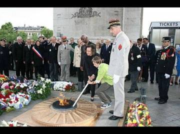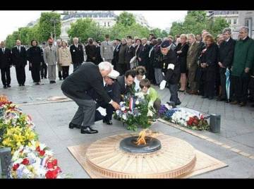 Cérémonie de dépôt de gerbes et de ravivage de la Flamme sur la Tombe du soldat inconnu